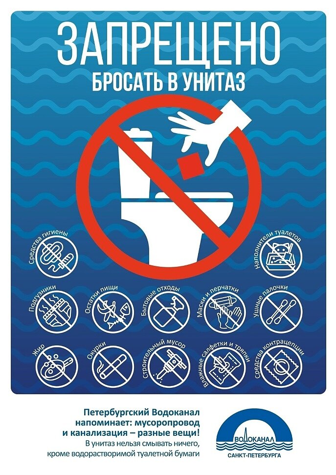 Убедительно просим соблюдать правила пользования системой водоотведения многоквартирных домов, не смывать в канализацию посторонние предметы.